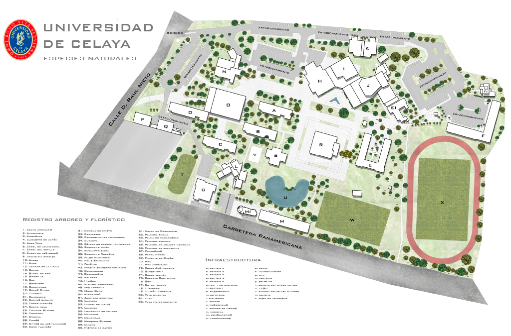 Te compartimos el plano arbóreo y florístico del campus, para que realices tu propia exploración botánica.